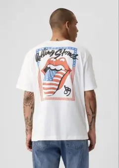 ローリングストーンズのTシャツには威嚇的なデザインが多いですが、こちらは身を隠してベロを出しています。