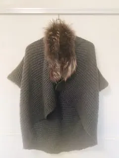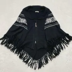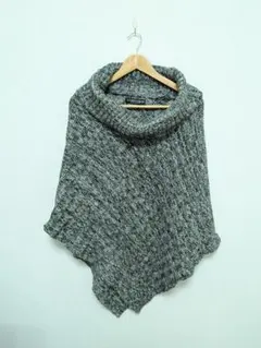 飾りボタン付きニットポンチョ グレー サイズM