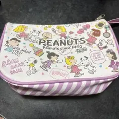 スヌーピーのイラストが施された黒いナイロンバッグ。