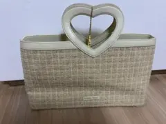 サマンサタバサ ハンドバッグ ツイード 黄色 チャーム付 ハートハンドル