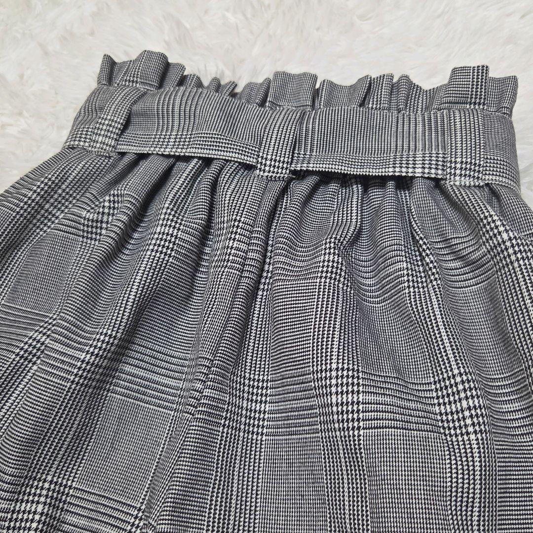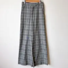 GU ジーユー ベルト付ワイドパンツ グレンチェック S ハイウエスト ゴム