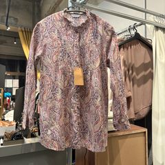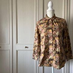Savoir シャツ ブラウス M リバティ 丸襟 綿 ブルー サヴォア