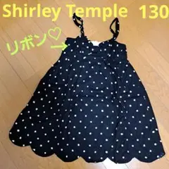 良品 Shirley Temple ドット柄ワンピース 120 リボン付き ブラック