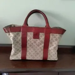 ラシットの、何とも表現しがたいオレンジ寄りの赤色のトートバッグです。