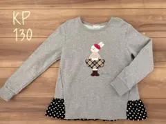 KPのフリル付きのピンクトレーナー、130cmサイズ、可愛いプリントデザイン。