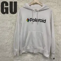 GUのシンプルなホワイトのフード付きショートスリーブパーカー、柔らかい生地で快適な着心地。