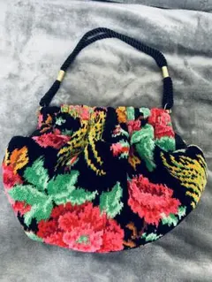 FEILER フェイラー 花柄刺繍 ハンドバッグ ブラック