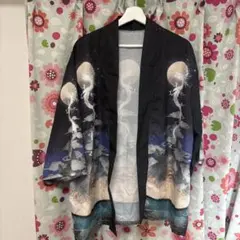 赤や橙を基調とした大胆なグラフィックが目を引き、羽織として普段着に合わせるのはもちろん、浴衣や着物と組み合わせて夏祭りやイベントなどにもぴったり♪