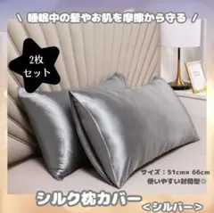 【シルバー/2枚セット】シルク 枕カバーシルク 摩擦軽減 美髪 ピローケース