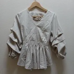GRLグレイルSサイズ襟付きパワショルカットプルオーバーK8614グレージュ①⑦