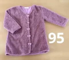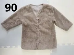 ケーブル編みのデザインとフリルが特徴のベージュニットアウター。
