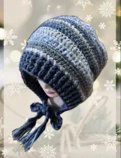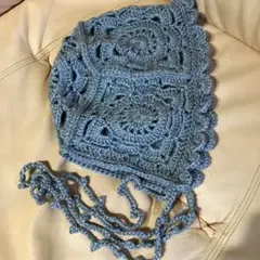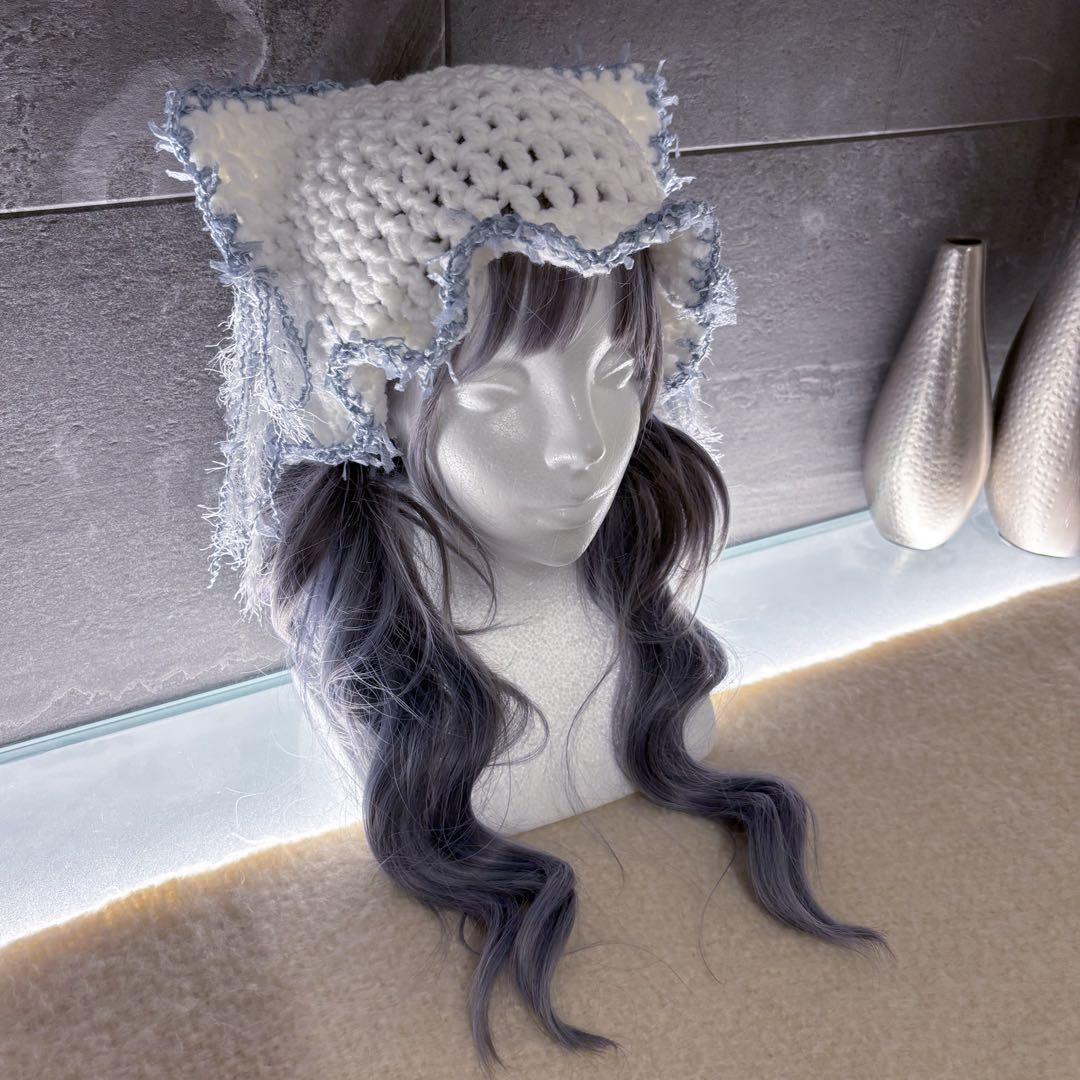猫耳ニット帽 猫耳帽子 ボンネット 水色界隈 ホワイト×くすみブルー 天使界隈