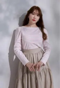 柔らかなグレーの長袖トップス、綿83%とポリエステル17%の混合素材で快適な着心地。