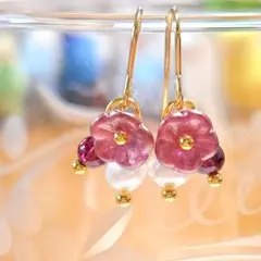 【541】14kgf ピアス 天然アバロンシェルxガーネットのピアス