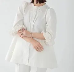 立体感のあるフリルが付いた袖口がエレガントで大人可愛い。