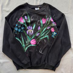 アメリカ古着 プリントスウェットトレーナー 袖プリント ブラック黒 L