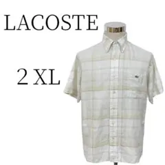 LACOSTEのチェック柄半袖シャツ、ボタンダウンカラーで快適な着心地。