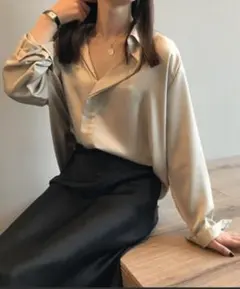 ブラウス シャツ Vネックキャンディースリーブシャツ レディース ブルー