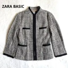 ZARABASICツイードジャケット ノーカラー 赤 S