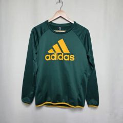 adidasのブラック長袖Tシャツ、ストライプデザイン。