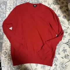 シンプルでスタイリッシュな赤のニットセーター、100%綿素材で快適な着心地。