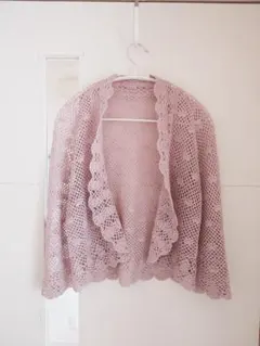 ファーボンボン付きのベージュアクリルカーディガン、ケーブル編みデザインでショート丈。