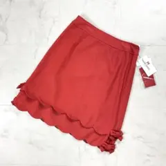 サイドのリボンが可愛い、レザー調の薄いピンクの膝下丈スカートです。とても可愛いのでお勧めです。私には似合わないので試着のみです。秋、冬にピッタリです。ウエスト平置き37くらい丈66くらいです。柔らかい肌触り良い生地です