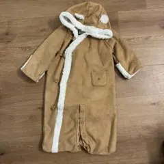 フード付きのブラウンの全身スーツ、内側はフリース素材で暖かい。