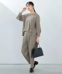 入学・卒園などのセレモニーからお仕事まで幅広く対応できるセット。ジャケットは上品なノーカラーで顔周りをすっきり見せ、ほどよい落ち感の素材が大人のきれいめムードを演出。パンツはタック入りのワイドシルエットで脚線を拾いにくく、動きやすさも◎。別ブランド同士ながら色合わせがしやすいライトグレー×ネイビーで、白ブラウスを差せば即完成です。