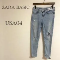 zG429【XS】ZARA BASIC クラッシュデニム USED加工