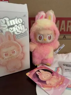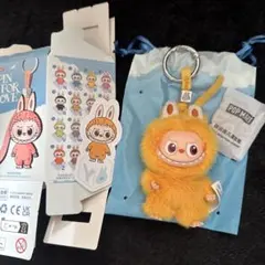 ラブブの可愛いぬいぐるみキーホルダー、オリジナルバッグ付き。