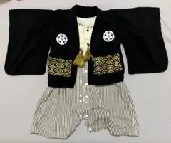 和風デザインの黒い着物スタイル、サイズ80、100%コットン製。