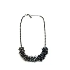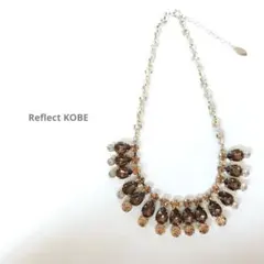 コットンパールと金属の葉をあしらったフラワー風デザインのネックレス。