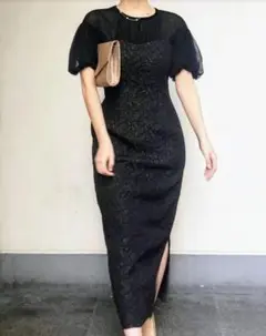 膨れジャカード素材が存在感を出してくれるドレス。