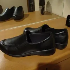 オフィスからカジュアルまで幅広く使える、シンプルなヒールローファー。ソフトなストレッチ合皮が足に優しくフィットし、やや高めの4.5cmヒールがスッキリとした足元を演出します。