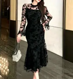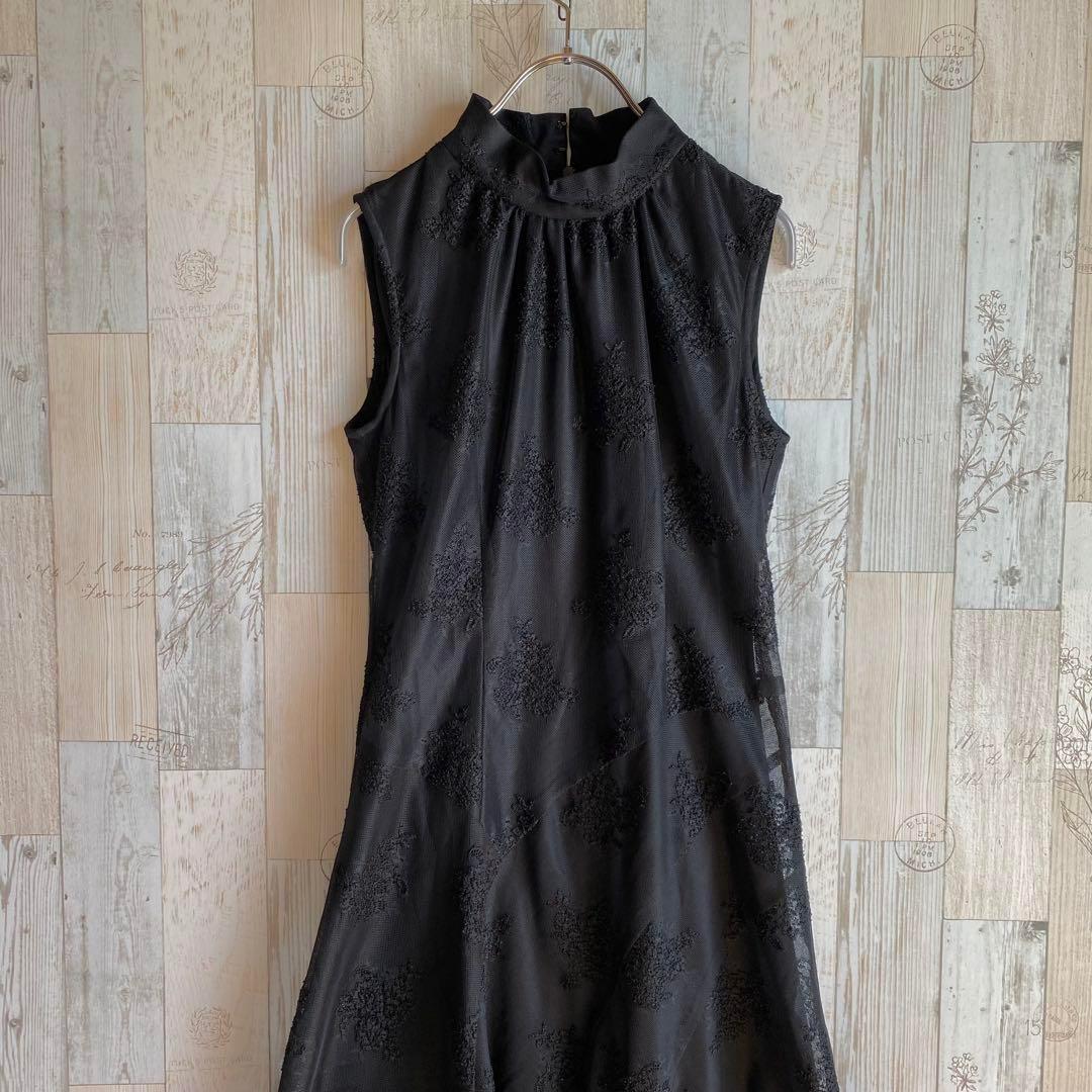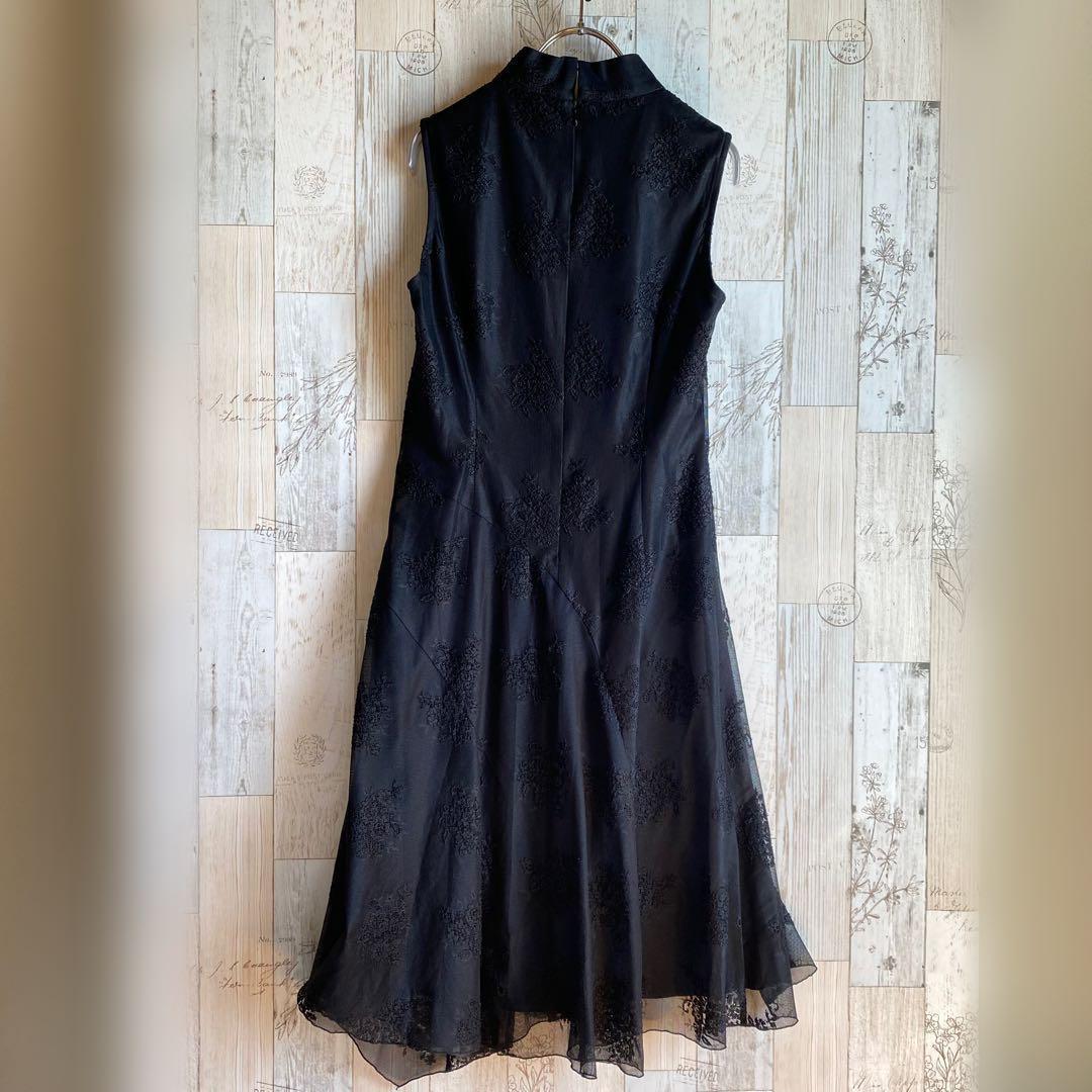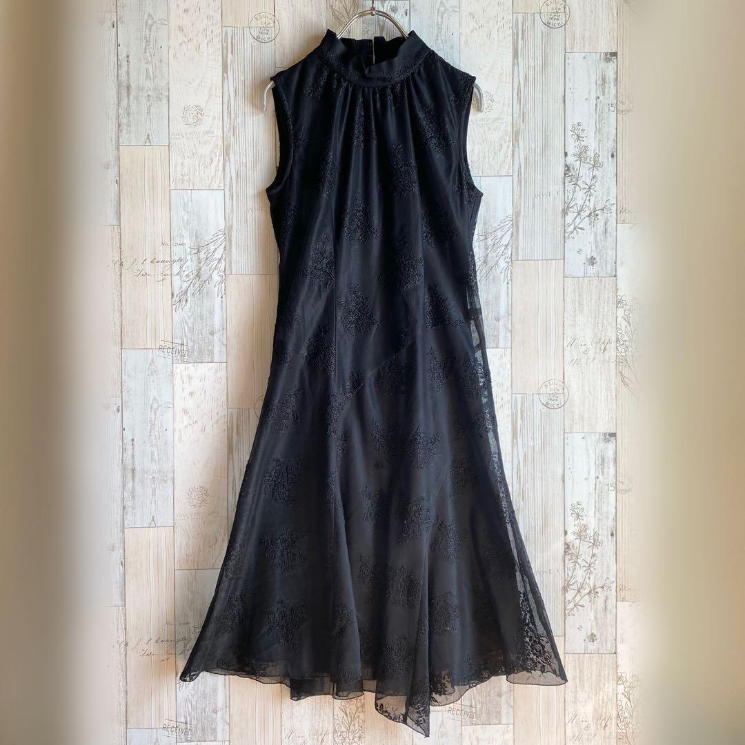 BATEAU MOUCHE ロングワンピースドレス ノースリーブ レース 黒 M