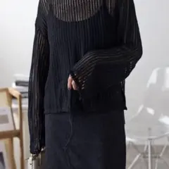 ブラックメッシュオーバーサイズトップスクルーネックオーバーシアートップス