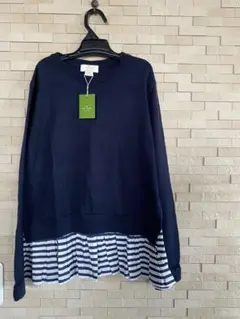 ケイト・スペードのネイビーを基調としたミックス毛糸で編んだニットです。