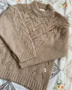 ケーブル編みにポップコーン編み、広めの袖口も可愛いです。