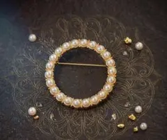 パールとラインストーンが可愛いリース型ブローチです。