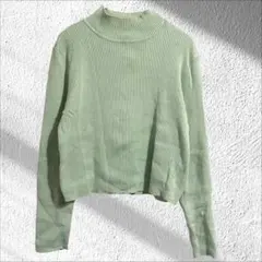 鮮やかで美しいハッキリとしたグリーンのハイネック リブニットのトップスです。