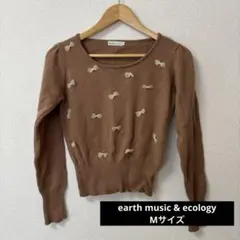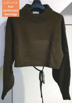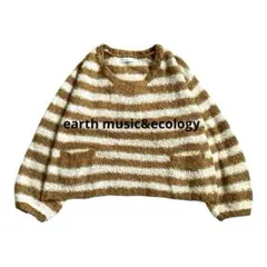 アースミュージックアンドエコロジー ケーブル編みニット F モカ ショート丈