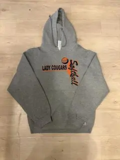 グレーのジップアップパーカー、綿100%で快適な着心地。