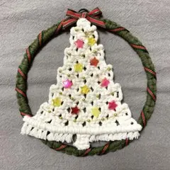 ハンドメイドのマクラメで作られたかわいいクリスマスオーナメントです。