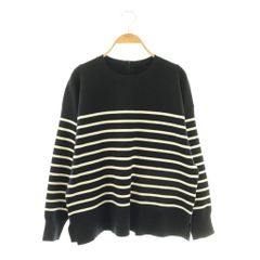 美品 クルーネック長袖ニット トップス フリル襟 ボーダー オンワード樫山 38 レディース
