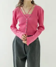 mystic ショートカーディガン・パット付きキャミソールセット ピンク