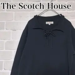 スコッチハウス【M】毛100% ジップアップ カーディガン セーター 青/ニット