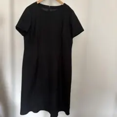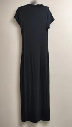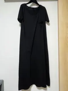 ボタン付きのシンプルな黒のカットソーワンピース。