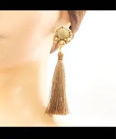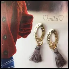 型押し風の変形リングにタッセルを合わせシンプルに仕上げました♡秋服との馴染みも良いですしシンプルなスタイリングの抜け感を出すのにも♡