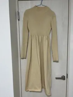 ボルドー ハイネック ロングニットワンピース